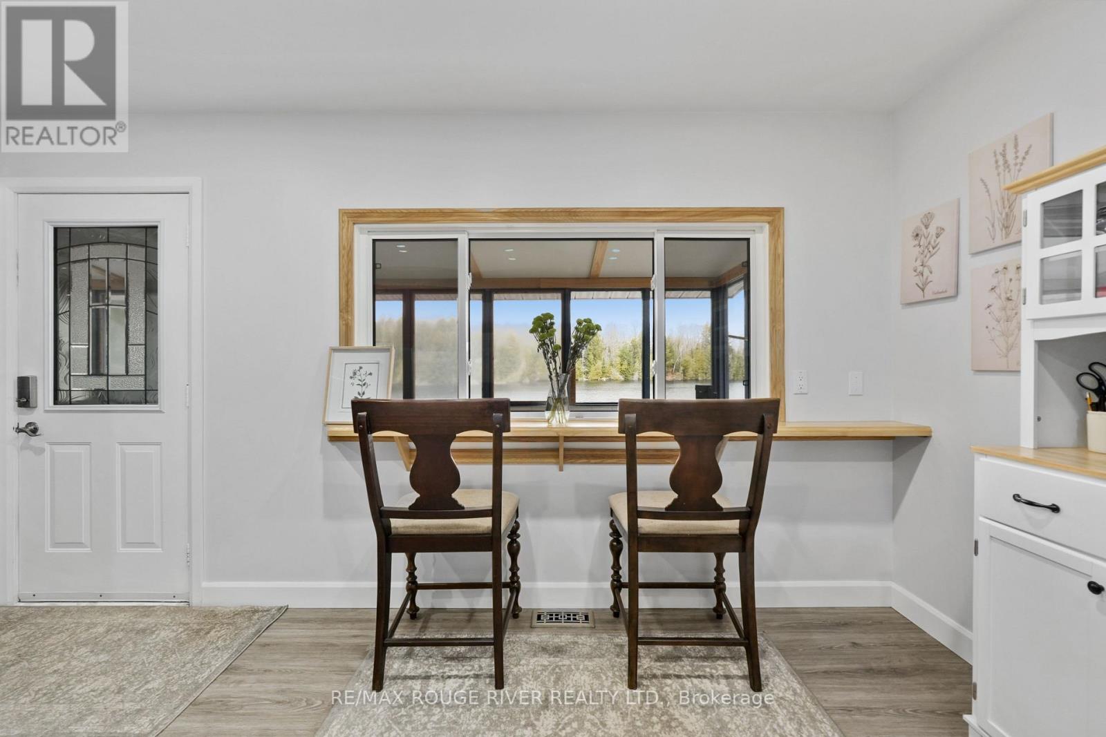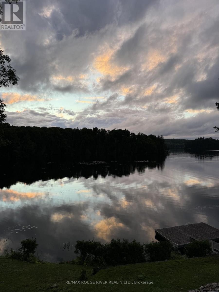 Welcome to this beautifully maintained and thoughtfully upgraded waterfront walk-out raised bungalow offering approximately 1835 sq. ft. of finished living space, tucked into a peaceful bay on Paudash Lake. Extensive landscaping makes this property a standout, featuring a striking 125-foot boulder wall with fresh mulch and gardens. Stunning armour stone and river rock lead to 247 feet of waterfront and a private 12' x 16' cedar dock with aluminum frame - perfect for breathtaking sunrises and sunsets. Three outbuildings (2023) with solar lighting and metal roofs provide excellent space for storage, hobbies, or entertaining. Inside, a tranquil sunroom overlooks the lake with weatherproof finishes and an electric fireplace for year-round comfort. Custom ash window casings frame recently replaced windows throughout the carpet-free main level. The modernized kitchen offers high-end appliances and flows into a spacious pantry/laundry room with built-in cabinetry. The sun-filled primary bedroom features heated engineered hardwood, a walk-in closet, and a renovated 3-piece ensuite with heated floors. The open-concept living and dining area showcases hardwood flooring and a WETT-certified stunning fieldstone wood-burning fireplace insert (2024). A man door leads to the insulated, heated two-car garage with thoughtfully planned built-in storage. An updated 3-piece bath and generous second bedroom complete the main level. The finished lower level walks out to a covered stamped concrete porch at the lake and includes a large workshop with sink, floor-to-ceiling cabinetry, and a propane fireplace (2019) with separate thermostat. Additional updates: split heating/cooling (2023), roof (2015), windows (2020), propane furnace (2019), well pump and pressure tank (2025), front door (2022), Propane hook-up to BBQ location on porch and more. (id:37535)