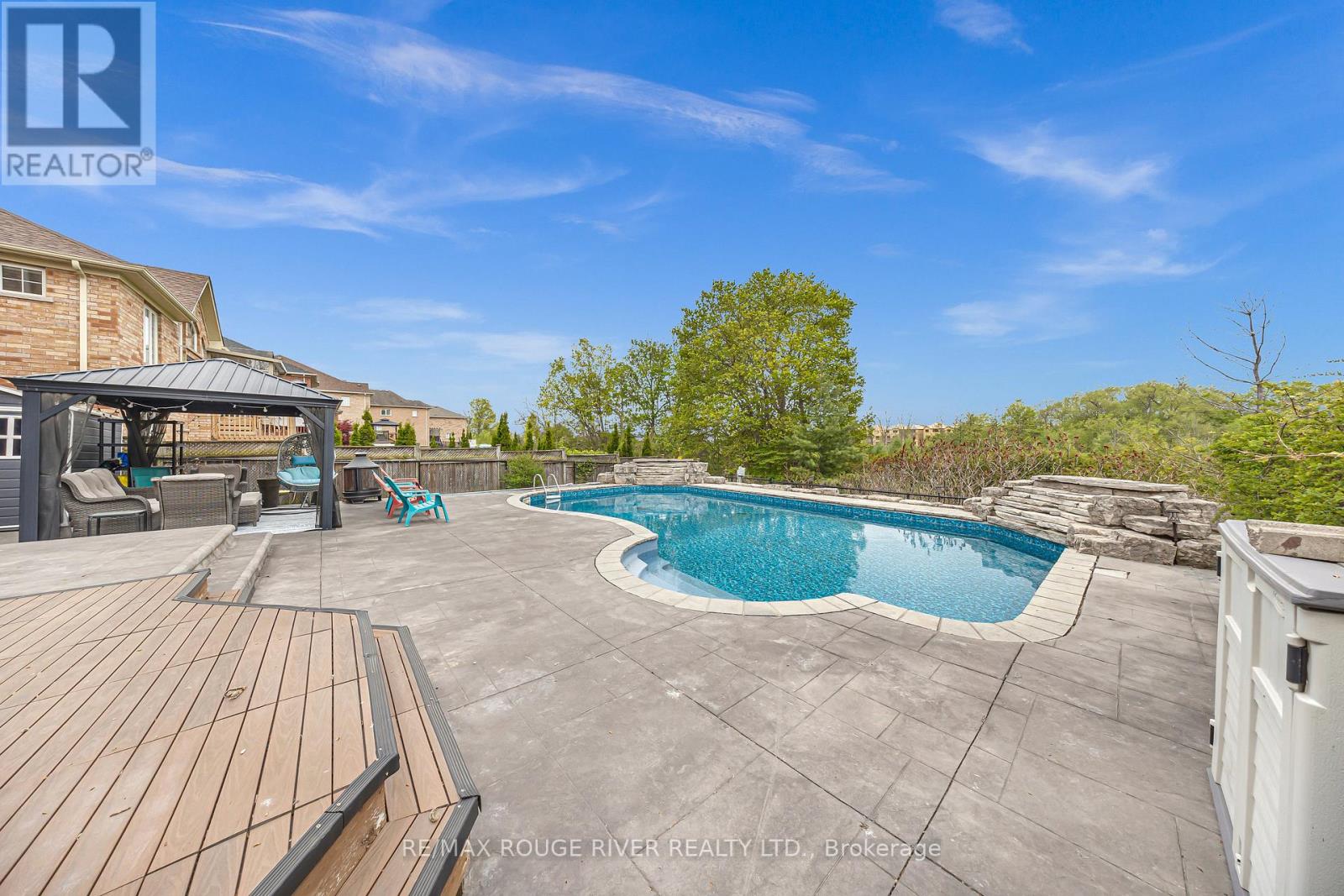 Absolutely Stunning Detached Home Situated In The Heart Of The Prestigious Williamsburg Neighbourhood, Boasting Over 3,000 Sq Ft Of Luxurious Living Space On A Rare And Serene Ravine Lot With A Spectacular Inground Pool, Double Waterfall Features, And Breathtaking Western Exposure For Sunset Views Plus This Family Home Perfectly Positioned Steps Away From The Iconic Rocketship Park Truly A Dream Location For Families! The Exterior Is Fully Landscaped With Stamped Concrete, Offering A Low-maintenance Lifestyle. Step Inside To An Inviting Open-concept Layout Enhanced By New Gleaming Hardwood Floors And An Upgraded Staircase. The Combined Living And Dining Areas Are Bathed In Natural Light From Oversized Windows. The Spacious Family Room Is Perfect For Entertaining Or Relaxing, Highlighted By Crown Moulding, Large Windows With Ravine Views, And A Coffered Ceiling That Adds Architectural Elegance. The Upgraded Kitchen With Stainless Steel Appliances, A Large Centre Island, Granite Countertops, Stylish Backsplash, And A Breakfast Area With Walk-out To The Elevated Deck Overlooking Your Backyard Paradise. Upstairs, You'll Find Five Spacious Bedrooms, Perfect For A Growing Family. The Primary Suite Offers A 5-piece Ensuite, Walk-in Closet, And Ravine Views. The 4th Bedroom Also Features Its Own 4-piece Ensuite And Walk-in Closet. The Remaining Bedrooms Are Spacious, Each With Large Windows And Ample Closet Space, Providing Comfort And Functionality For Everyone. The Fully Finished Walk-out Basement With A Separate Entrance Offers Endless Possibilities An Ideal Setup For Extended Family, Guests, Or Potential Rental Income. This Home Truly Has It All. Located Steps Away From Top-rated Schools Like Williamsburg Public, Parks, Shopping, Restaurants, Hwy 401, 412, And The Go Station. Truly A Forever Home. Property Was Previously Staged. (id:37535)