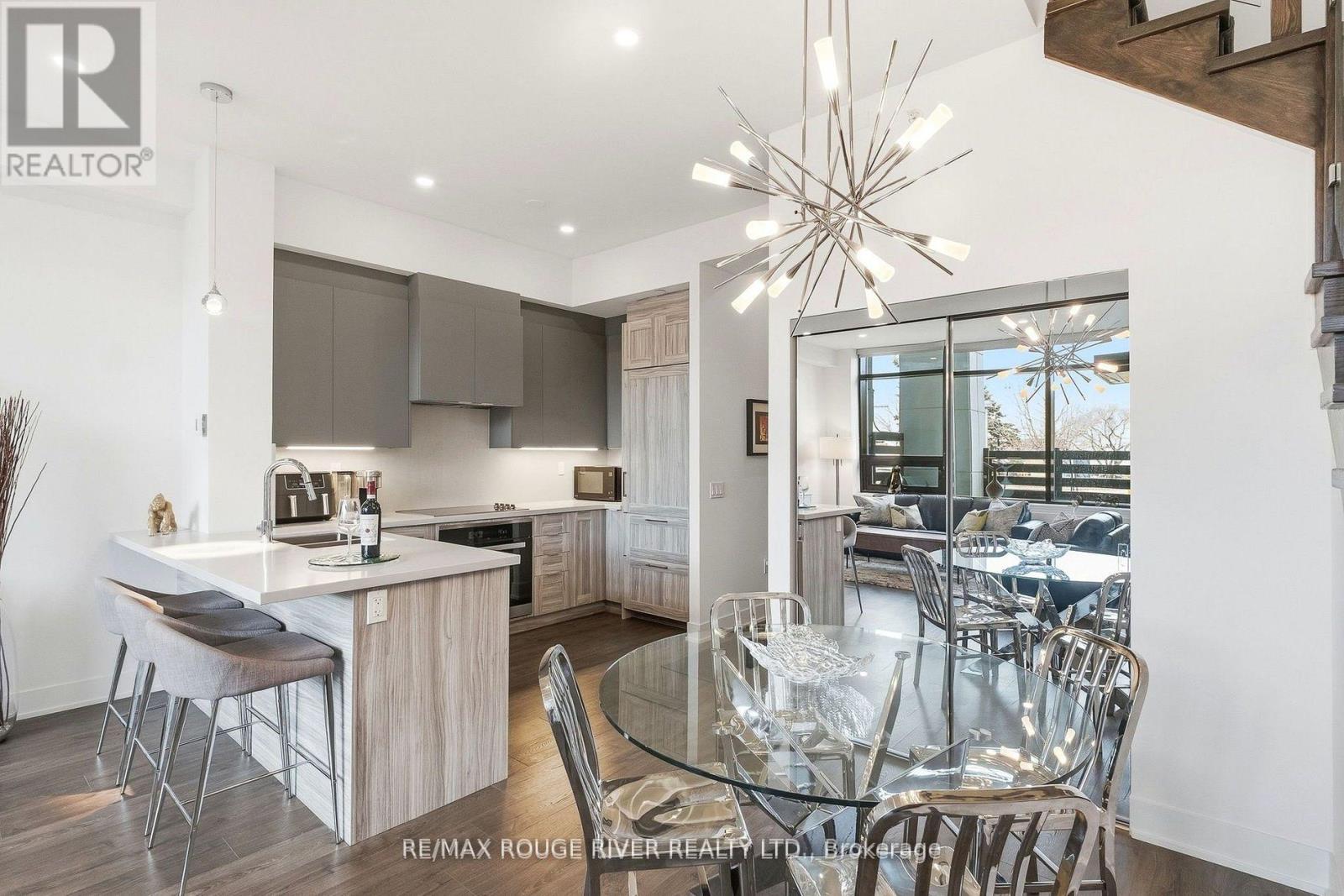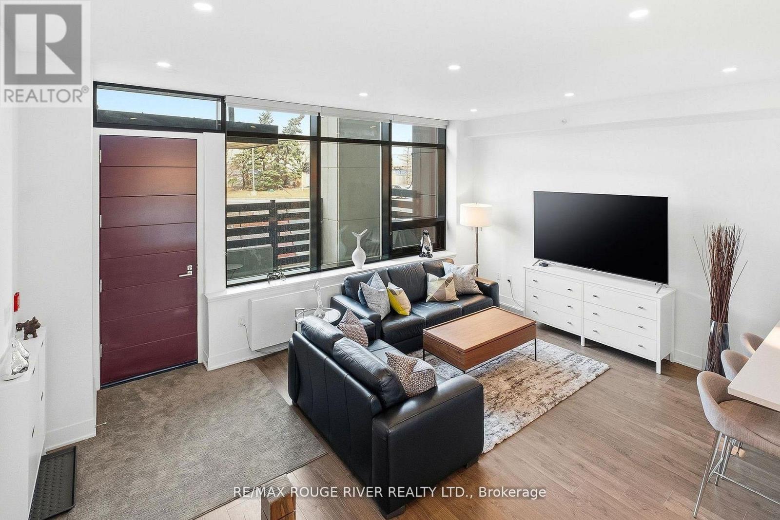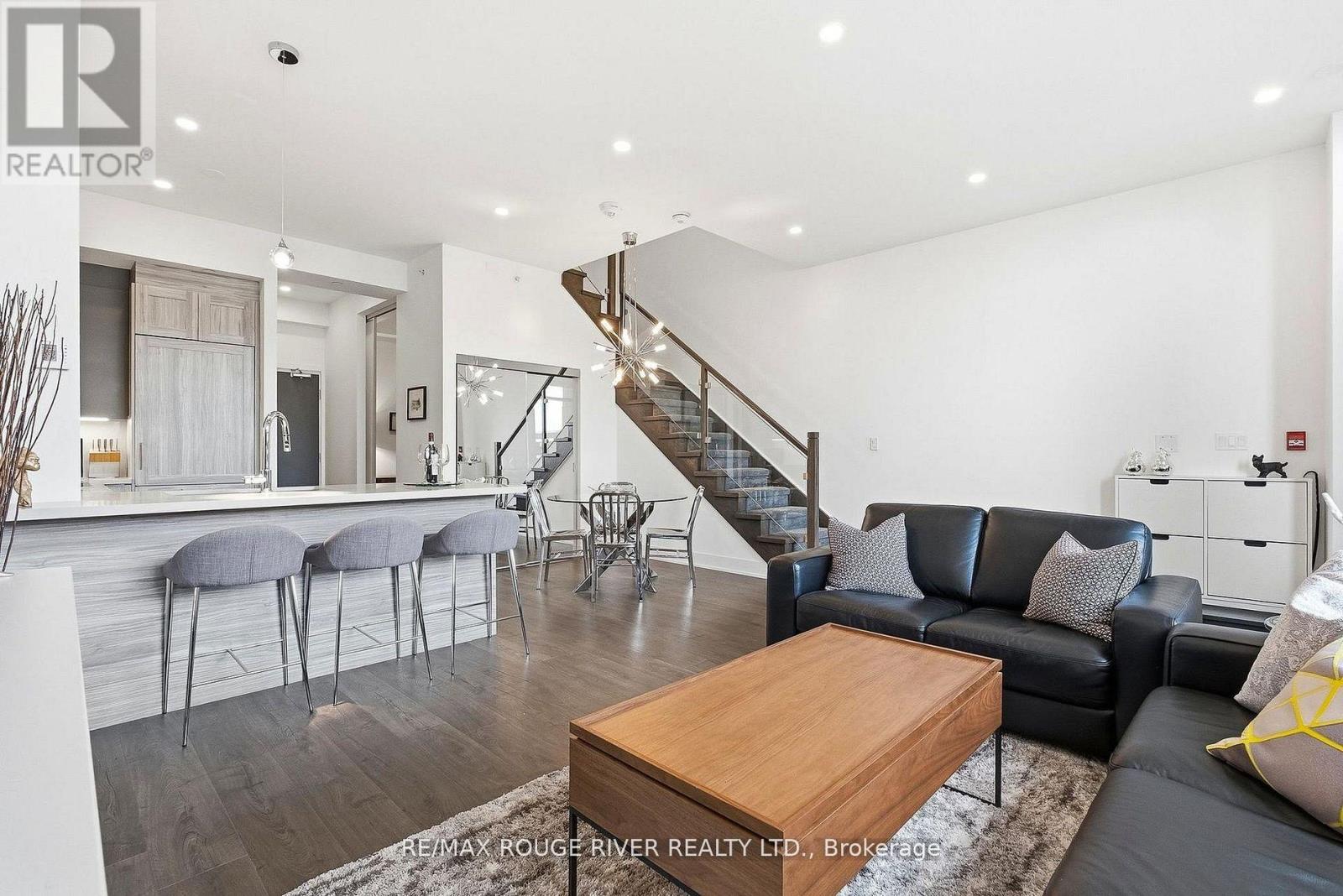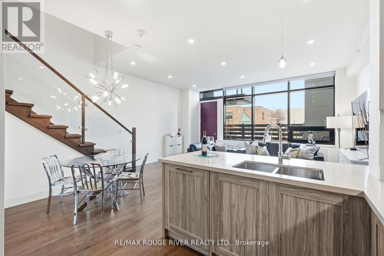 $846.39 MonthlyA rare private-entry lux town at the prestigious NORD East Condos, where the refined design reflects an elevated urban lifestyle. Known for its exceptional amenities and well-regarded Del Property Management, the bright, open interior features soaring ceilings, expansive windows, and a seamless walkout to a private terrace, ideal for dining alfresco, complete with a BBQ gas line, waterline, and your own private exterior entry gate, perfect for an active, pet-friendly lifestyle. The integrated chef's kitchen showcases Caesarstone counters and premium Miele appliances, blending style with everyday functionality. A spacious main-floor den with mirrored closets offers versatility as an office or a guest room, conveniently located near the powder room. The elegant glass staircase leads to a generous primary retreat featuring a large walk-in closet and a well appointed ensuite with extended double vanities. Custom blinds, pot lights, chandeliers, and curated finishes enhance the home throughout. Residents enjoy resort-style amenities including an aqua oasis with indoor/outdoor pools, yoga studio, fitness centre, 24-hour concierge, guest suites, theatre room, party room, chef's table, and pet spa. Access to a new park featuring a children's play area adds to the community"s appeal. Includes a storage locker and a dedicated underground parking space, plus ample ground level visitor parking. With a 10 min. walk to the VMC (subway, TTC line 1), & the SmartVMC bus terminal, & Viva transit, the power of proximity offers seamless connectivity to the city. (id:37535)